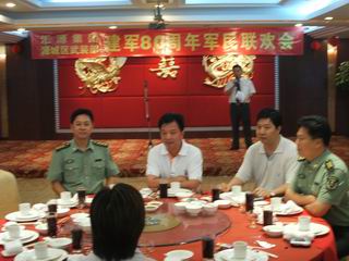8月1日,匯源集團與源城區(qū)武裝部全體官兵在濱江金利大酒店舉行建軍八十周年聯(lián)歡晚會,市委常委、軍分區(qū)政委趙國禎和匯源集團董事長賴運宏、副董事長劉越香出席了晚會。聯(lián)歡會上,賴運宏董事長代表匯源集團向源城區(qū)武裝部贈送了《軍民共建》牌匾。