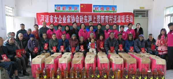 春節(jié)前,河源市女企業(yè)家協(xié)會會員赴東源縣上莞鎮(zhèn)新南村慰問孤寡老人、單親特困家庭。