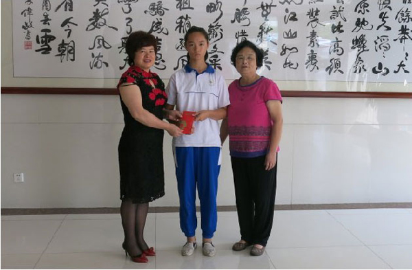 協(xié)會會長劉越香、秘書長張松招代表協(xié)會為貧困家庭學(xué)子捐資助學(xué)。
